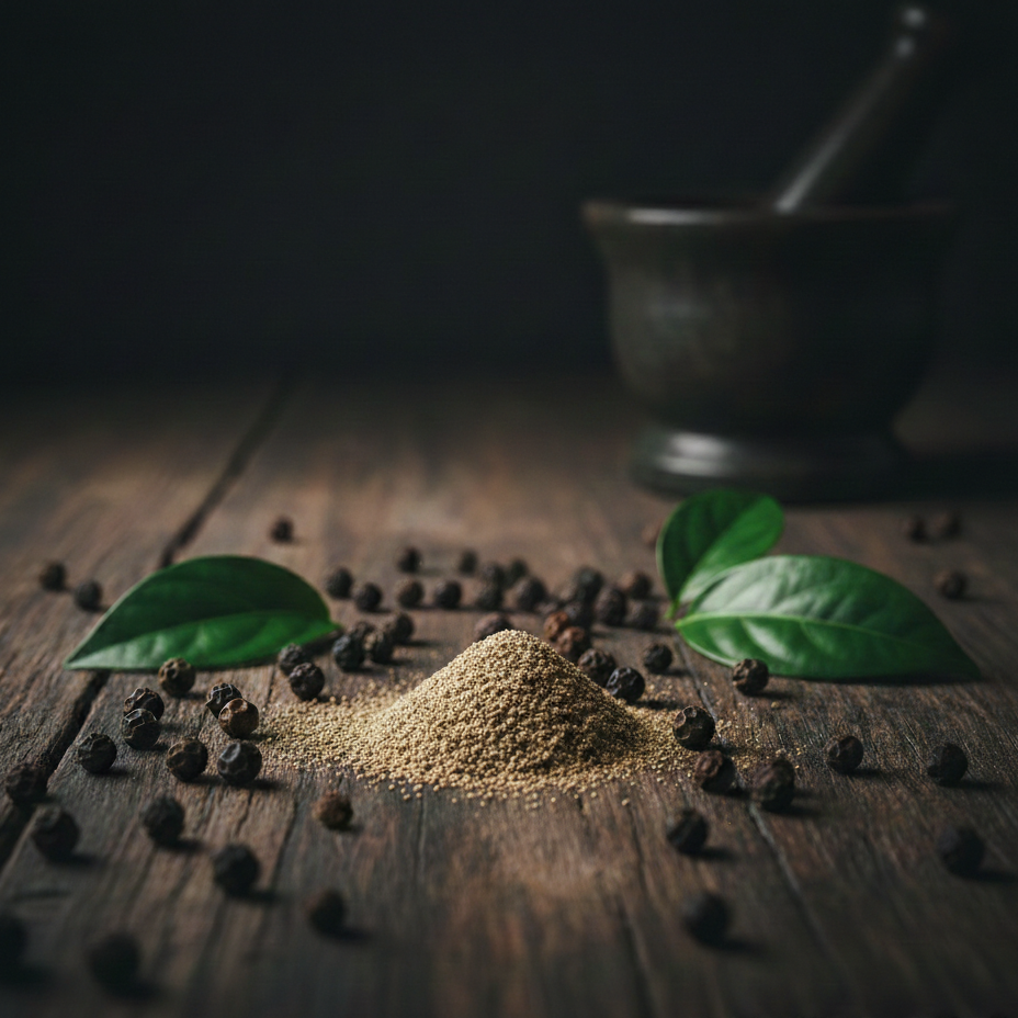 A piperina aumenta em até 2000% a absorção da curcumina, tornando-a muito mais eficaz para o organismo.