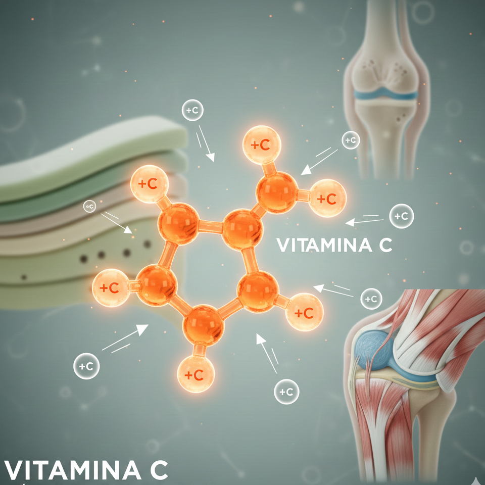 A vitamina C contribui para a produção natural de colágeno pelo organismo e auxilia na manutenção da saúde da cartilagem.